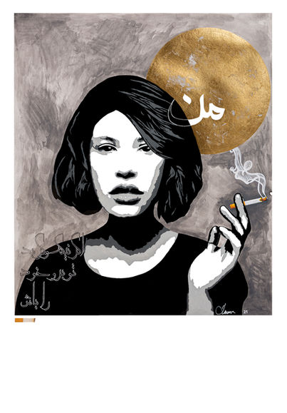 The words written in the painitng are persain calliography of a ghazal from Hafez, who is one the most celbrated Persian poets. It means: "whether I'm good or bad, you go and judge yourself". I also burned the paper with a "Bahman" cigarette, which is also glued to the painting. The woman in tha picture is inspired by one of amayzing portraits, photographed by Ezgi Polat.